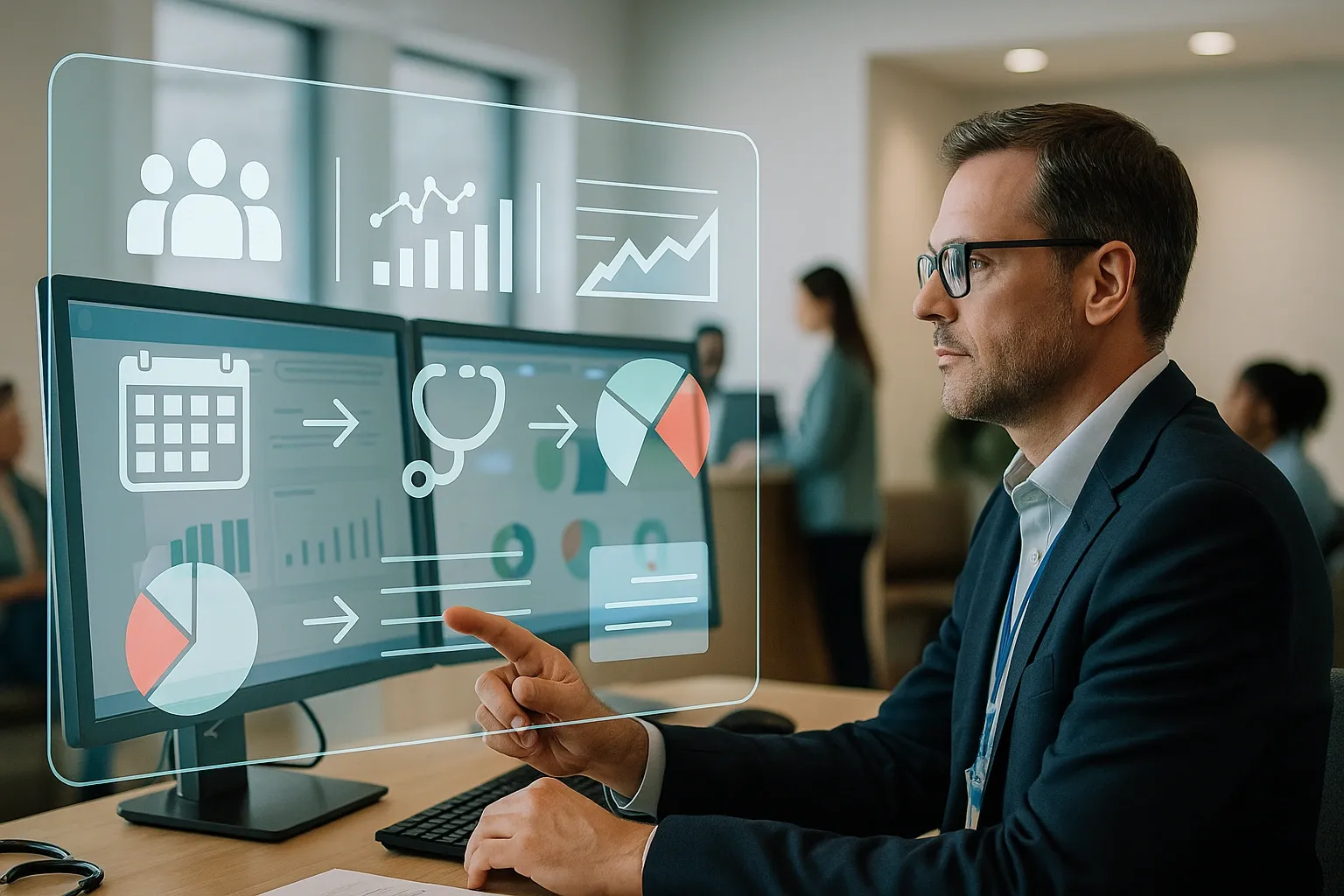 BI tools (Business Intelligence solutions) allow healthcare organizations to collect and centralize data from multiple systems—Electronic Health Records (EHR), revenue cycle management (RCM), scheduling platforms, and financial modules. These tools transform dispersed information into interactive reports, enabling managers to monitor clinical performance, patient access, reimbursement timing, and revenue integrity.