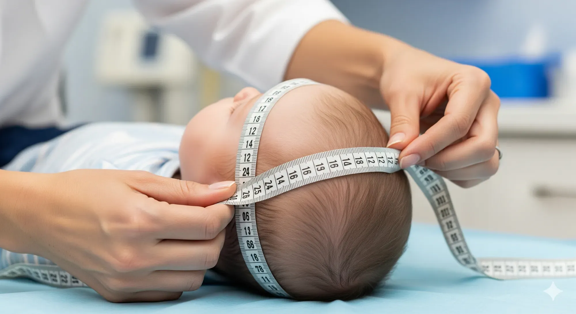 - Head circumference: use a non-stretchable tape, passing over the glabella and maximum occipital prominence; note the average of two measures.