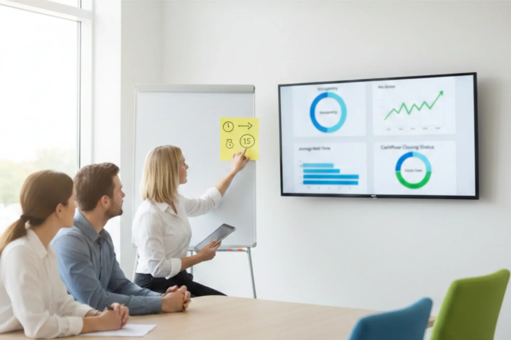 Useful metrics: no-show rate, average response time, and complaints about “inconsistent information.”