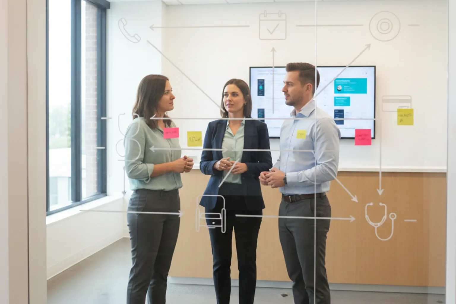 The goal is to reduce variability where it creates risk (registration data, guidance, clinical documentation, and internal handoffs) while preserving room for personalization where it truly adds value (empathy, active listening, and clinical approach).