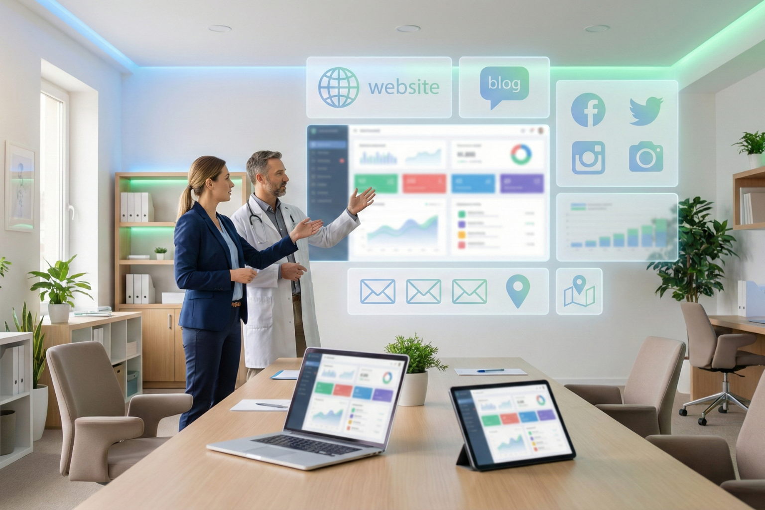 A professional website builds credibility, facilitates contact, and allows information about specialties, services, and staff to be shared. A blog with original articles boosts SEO (Google ranking) and attracts qualified visitors. This channel can also act as a trustworthy information hub for patients.