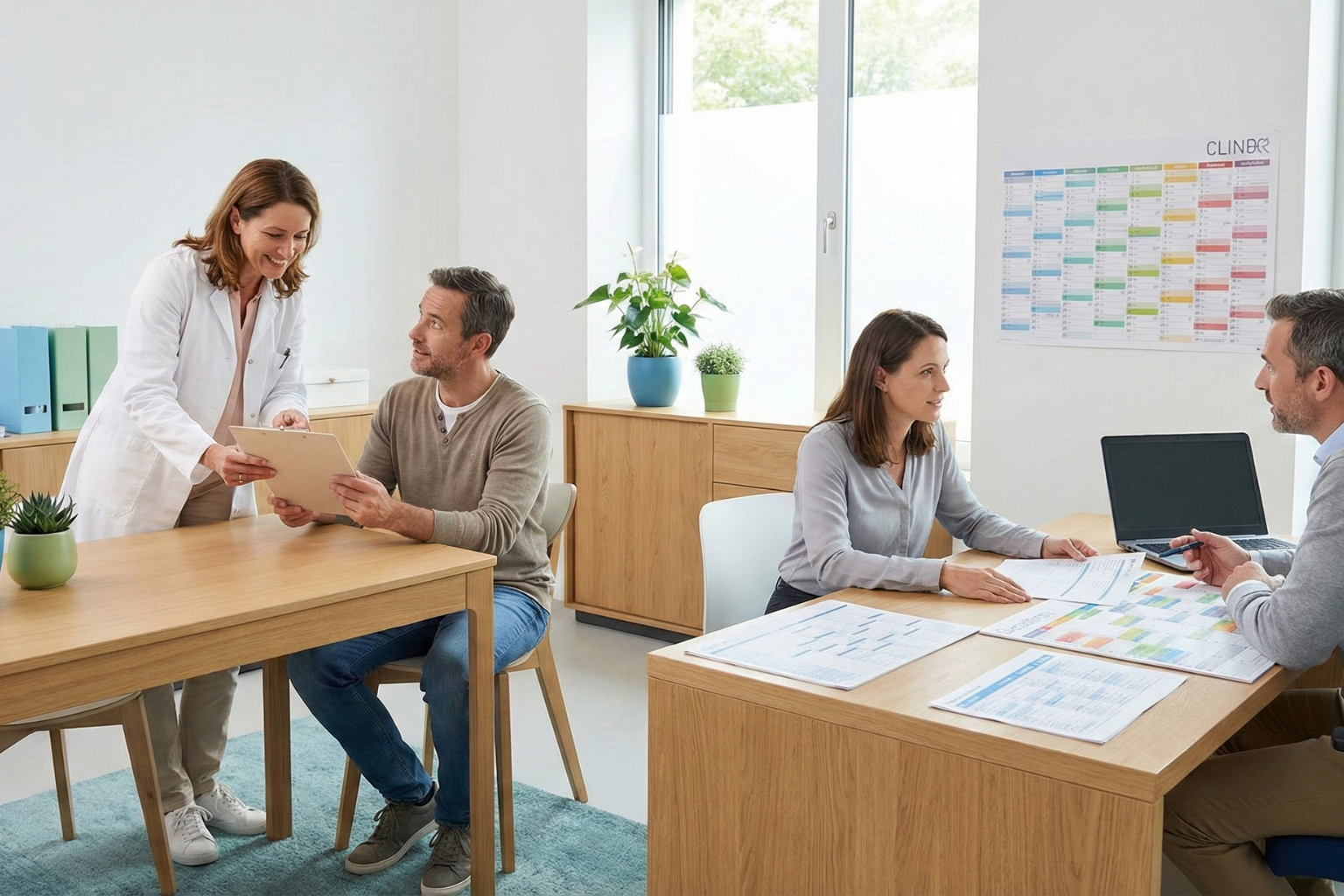 Promoting internal training, aligning brand identity, and using service scripts are effective ways to ensure consistency and strengthen the clinic’s image. A patient-centered organizational culture should be reinforced daily.