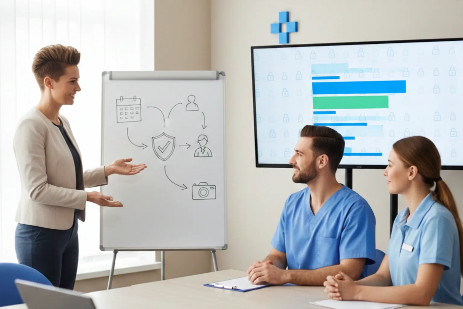 Practical example: limiting the front desk to operational data (schedule/contact/insurer) reduces exposure without harming care delivery.